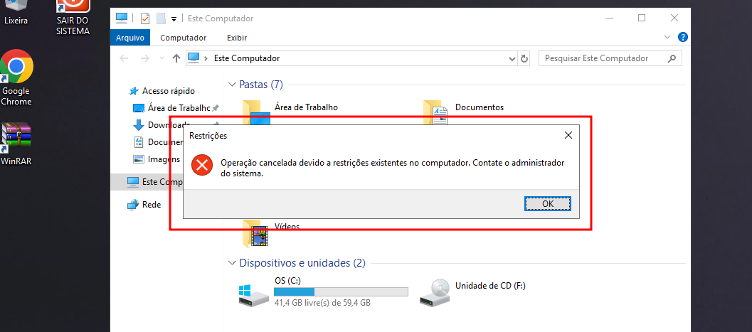 Esta operação foi cancelada devido a restrições em vigor neste computador. Entre em contato com o administrador do sistema.